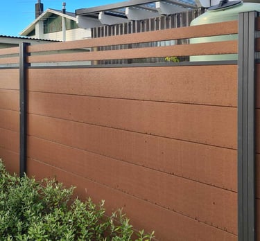Composite fences offer a sleek, uniform appearance and come in a variety of colors and textures that mimic natural wood! In Addition, its very low maintenance and doesn’t rot, warp, crack, or splinter like wood.